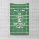 Welcome your guests with this playful birthday party welcome sign designed for a football-themed celebration. Perfect for a boy birthday, this cute design brings the excitement of the football field to your event. With its green and white colour scheme, it adds a fun and whimsical touch to any sports party. A great piece of birthday party decor, this sign sets the tone for a memorable celebration full of team spirit.