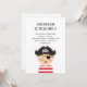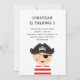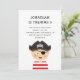 This pirate themed kids’ birthday invitation features a cute pirate character with an eye patch and striped shirt. It is fully customizable with the child’s name, party date, time, and location. Perfect for a pirate themed birthday party, this invitation sets the tone for an adventurous and fun celebration. Whether you’re planning a treasure hunt or pirate ship adventure, this invitation makes it easy to invite friends and family to join in the fun. Available as both a printed card and a digital download. Add a special touch to your party with this fun and customizable invitation.