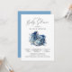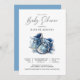 A cute whimsical simple little blue baby shoes baby shower invitation for a boy baby shower, in a modern watercolor minimal style. A unique bold modern style.