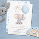 Boy Blue Balloon Cute Elephant Baby Shower Invitat Invitation
