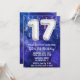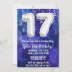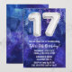 Boy blue white 17th Birthday invitation boys 17 birthday party invitation for a boy blue purple with modern script writing and fun foil balloons.