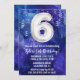 Boy blue white 6th Birthday invitation boys 6 birthday party invitation for a boy blue purple with modern script writing and fun foil balloons.