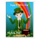 A boy dressed in emerald-green and wearing an emerald-green top hat is cheering because it’s a festive day and his birthday too. All text is personalizable.