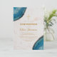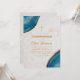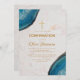 This elegant invitation, recommended for a boy's religious confirmation, has blue agate geodes on the upper left and lower right corners. The background is white marble.