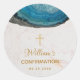 Boy Confirmation Blue Geode Elegant Script Marble Classic Round Sticker