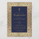 Boy Confirmation Navy Blue Gold Roses Frame Invitation