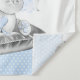Boy elephant prince baby shower backdrop with cute prince elephant on a pretty silver pillow on a blue and white dot background. This elephant baby shower backdrop is easily customised with your text.
