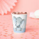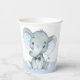 Boy elephant baby shower paper cups with cute baby elephant with bow tie on a blue dot background. You can personalise these elephant baby shower paper cups with the text of your choice. You can also remove the bow tie.