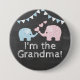 This adorable badge or pin back button tells all your baby shower guests "I'm the Grandma". Blue baby elephant and pink polka dot mummy elephant. Chalkboard look background image. Bunting flags. Customise the font and text colour. Personalise this badge for all family relatives. Perfect for big sister, aunt, great grandmother, Godmother and the mum-to-be. This image is available in other colours with matching products. Please visit "The Hungarican Princess - A Boutique" @ zazzle.com/hungaricanprincess* . Look in the "Baby Shower" category department or collections page. Congratulations.