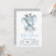 Boy elephant baby shower invitation with adorable baby elephant with pretty silver crown on a silver glitter background. This elephant baby shower invitation is easily customised for your event. You can remove the backside glitter background and add the colour of your choice.