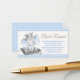 Boy elephant book request cards with adorable baby prince elephant on a blue polka dot background. These cute elephant book request cards are easily customised with your text.