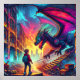 A little boy walking through an abandoned city finds a dragon in a dystopian world.