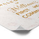 A modern baptism Welcome poster recommended for a boy's christening. In the upper part there is a blue agate geode. The background is white marble. The text is golden, written in caps, except the name, written with an elegant calligraphic script. There is a gold cross above the text (and under the geode).