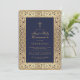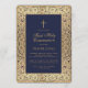 Boy First Communion Blue Gold Floral Frame Elegant Invitation
