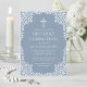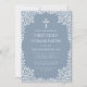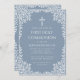Boy First Communion Dusty Blue White Leaves Cross Invitation