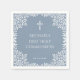 Boy First Communion Dusty Blue White Leaves Ornate Napkin