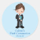 An adorable sticker featuring a a brunette boy holding a bible with a rosary hanging from his hands. Perfect to adorn favours, favour bags or use as envelope seals.