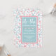 Boy or Girl Beach He or She Summer Gender Reveal Invitation. Welcome friends and family of the parents to a summer or beach themed gender reveal party! A cute and trendy watercolor starfish beach pattern, boasting a blend of captivating pink and blue or teal shades reminiscent of a beach house paradise. Embrace the essence of summer with this coastal-inspired design, adorned with whimsical sea stars that exude a nautical charm.