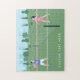 Boy Girl Playing Tennis Green Illustration & Text Jigsaw Puzzle