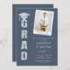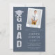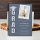 A background of engineering drafting designs, with the same engineer drafting paper effect over the bold letters spelling the word GRAD, decorate this modern, elegant and classy boy high school graduation party or celebration photo invitation for a boy who loves technology, engineering and all things geeky. Customise every line of text, to include the graduation ceremony and afterwards party, or only the party, an open-house celebration... etc. Template for one photo. A fun and elegant high school graduation invitation for boys.