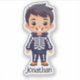 This is a cute halloween sticker that features a boy in skeleton-like Halloween costume. You can customise the default name/text "jonathan"