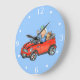 On this clock is a drawing by Ans Collijn, a little boy driving around in his toy car with his dog.