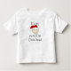 A boy with a red stocking cap and kid style text that reads "It's my very first Christmas!" on baby's first Christmas T-shirts, tote bags, and other holiday gear!