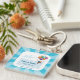 Delightful blue and white baby shower keychain with a balloon, a sweet keepsake for welcoming a baby boy.