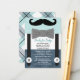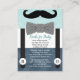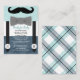This little man boy baby shower books request card features a cute little moustache, bow tie with polka dots, suspenders with a plaid backside design in mint green and navy blue. Build baby's library with this fun insert card! Matching invitation available in store.