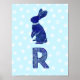 Boy Nursery Decor Rabbit Letter R Blue Dots