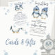boy oh boy winter baby shower twins theme featuring two cute penguins in blue winter hats & scarves, snowflakes, and snow
