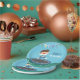 Personalised party supplies of paper plates for a trampoline or playground themed birthday party! It has a cute little boy bouncing gleefully on a trampoline. Bunting flags in various patterns like polka dots, stripes, stars and chevron are hanging in the background. Colour palette of blues and greens makes this great for birthday boys! Add your party message in the template texts provided.