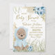 Boy pampas grass baby shower invitation with cute baby bear wearing a sweater on a floral pampas grass background. This boy bear baby shower invitation is easily personalised with your event details.