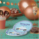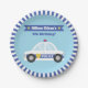 These party plates come with a white police car with a blue stripe on the side with the words Police and logo. A border of blue and white stripes. A great match for a kids police themed birthday party.