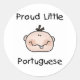 Baby nationalities T-shirt with a baby boy and kid style text that reads 'Proud Little Portuguese"! Our Proud Little Portuguese t-shirt is a great gift for the new baby boy.