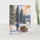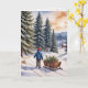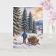 Boy Pulling a Sled With Christmas Evergreen Boughs Card