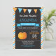 Pumpkin Birthday Invitation for Boy. Little Pumpkin Fall Birthday Invite. 1st First Birthday. Orange and blue stripes, chalkboard background. For further customisation, please click the "Customise it" button and use our design tool to modify this template.