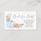 A cute baby boy shower invitation enclosure card that features "Books for Baby" in a pretty script with a heart swash and a watercolor of a pastel blue pumpkin, orange florals and greenery. Personalise the books for baby request in simple grey typography.