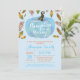 Pumpkin Fall Baby Shower Invitation. Autumn Baby Shower Invitation. Boy Baby Shower invite. Blue, Orange and Brown. For further customisation, please click the "Customise it" button and use our design tool to modify this template.