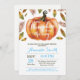 Pumpkin Fall Baby Shower Invitation. Autumn Baby Shower Invitation. Boy Baby Shower invite. Blue, Orange and Brown. For further customisation, please click the "Customise it" button and use our design tool to modify this template.