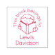 Cute simple child reading rubber stamp reads This book belongs to then customise with your own full name. Ideal to stop book mix ups or if books are taken to school. © Original drawing and graphic designed by Sarah Trett. www.sarahtrett.com for www.mylittleeden.com