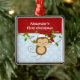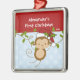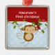 Baby's First Christmas Ornament features an adorable Santa monkey wearing a Santa hat swinging on a jungle set on a blue & white polka dotted background! Available in a heart shape in our shop! Personalise with your baby information and date and you're all set to go! Wonderful dated keepsake gift for your baby's 1st christmas.