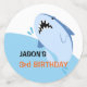 Kids shark birthday party confetti for any age, featuring the animal on a blue ocean background. Personalise this product by adding your child's name, age, or any custom text. Great decor for a sea theme birthday party for a boy in blue and orange.