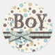 Fun, sweet boyish dots with matching stripe pattern and pacifiers for baby shower sticker.