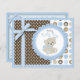 Novelty dots with teddy bear medallion and 3D look stripe bow "words of advice" note card.