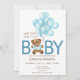 Cute little teddy bear brown and blue balloons baby shower invitations - We Can Bearly Wait For Baby To Arrive!