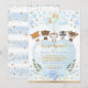 Welcome your little sweetheart with this adorable "baby shower by mail" invitation. Featuring friendly woodland animals, elegant flowers & greenery and sparkly blue & gold heart confetti, this invite will surely make your guests go ooh and ahh!. Click the "customise further" button if you wish to re-arrange and format the style and placement of the text. Comes with a matching blue & gold stripes backside.