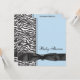 Elegant black and blue zebra and black bow tie baby boy shower invitation. Add your details to the front and back of this blue zebra baby shower invitation by simply adding your event details, font style, font size & colour, and wording.