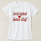 Shirt with I'm my boyfriend's better half in 3D red letters. Shirt available in several styles and colours with long or short sleeves.
