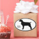 A black silhouette of a Boykin Spaniel, with its breed name. Excellent dog lover oval stickers.